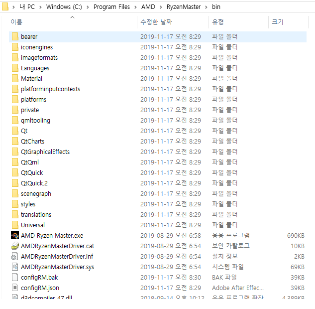 제대로 옮기셨으면 경로상에 이런식으로 파일이 저장됩니다. 이제 라이젠마스터를 켜봅시다.