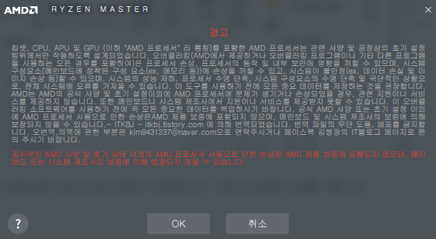 Ryzen Master가 2.3.0.xxxx버전으로 업데이트 됨에 따라 아래 한글패치는 구버전의 Ryzen Master에만 작동됩니다.