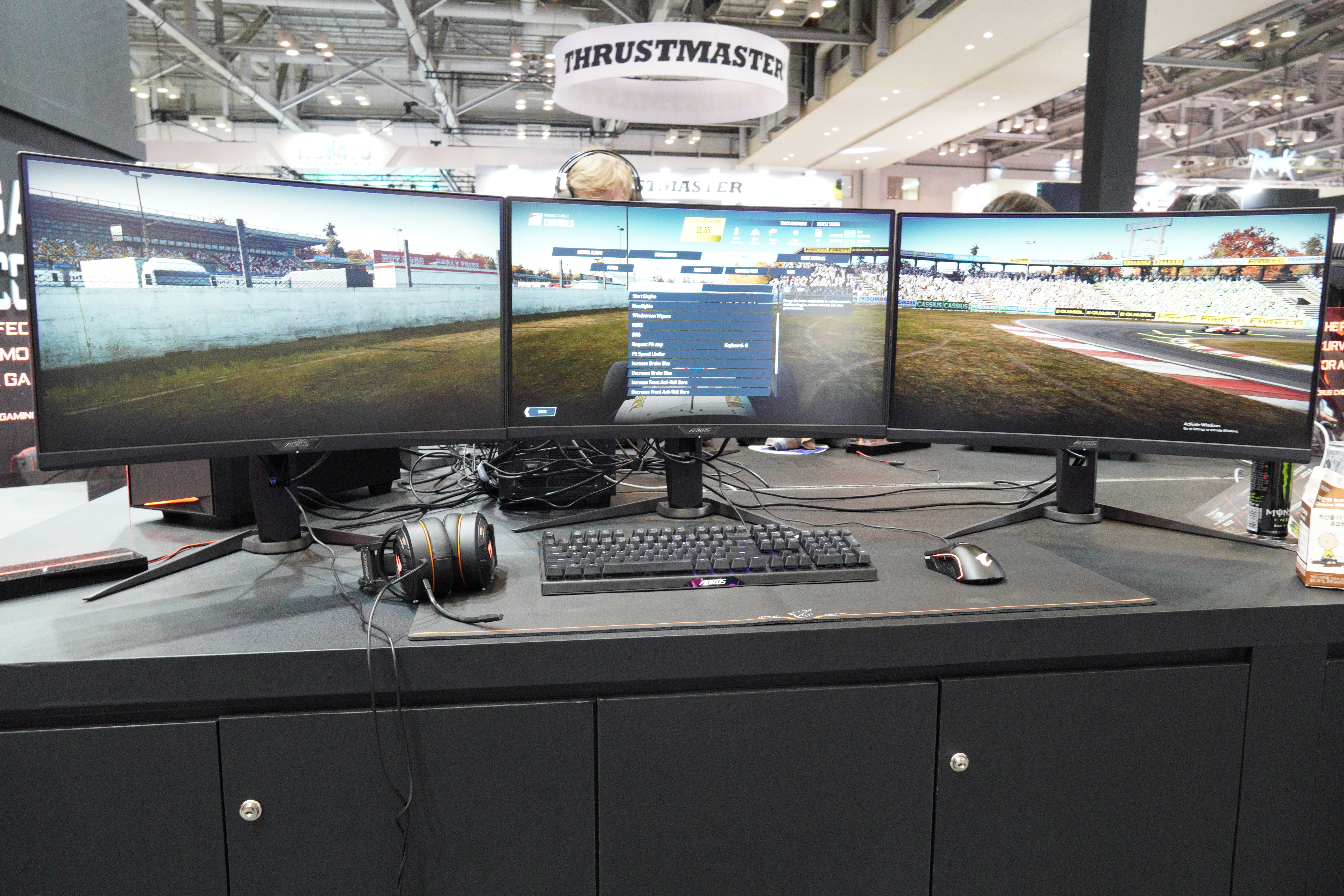 다른쪽에는 기가바이트의 모니터 3개를 트리플 구성으로 F1 게임을 플레이 할 수 있었습니다. 저는 곡면 디스플레이를 선호하지 않습니다만, 3개 붙여놓으니 몰입감도 좋고 괜찮더라고요.