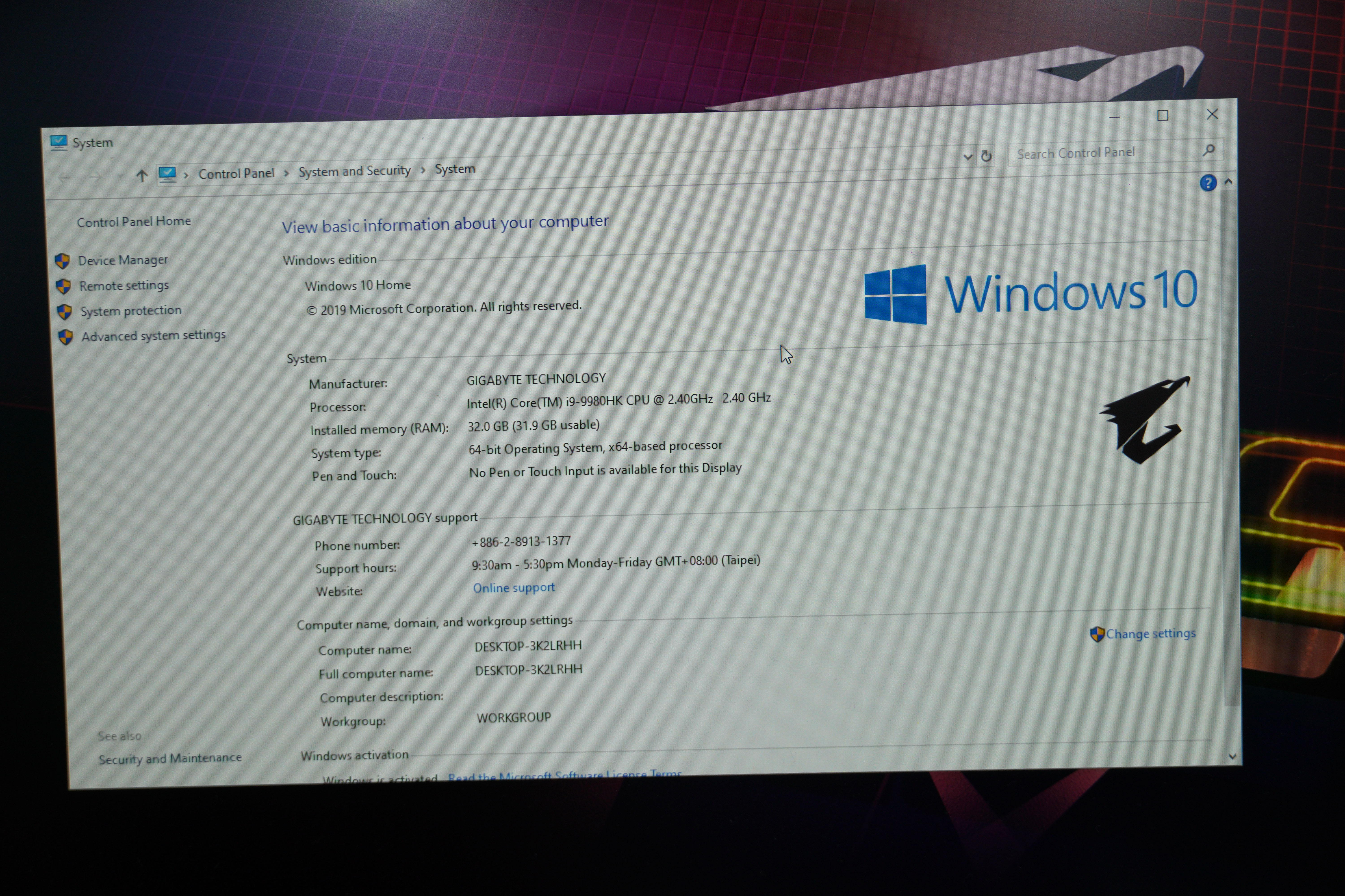 인텔 I9-9980HK 프로세서와 32GB 램이 탑재되어 있습니다.