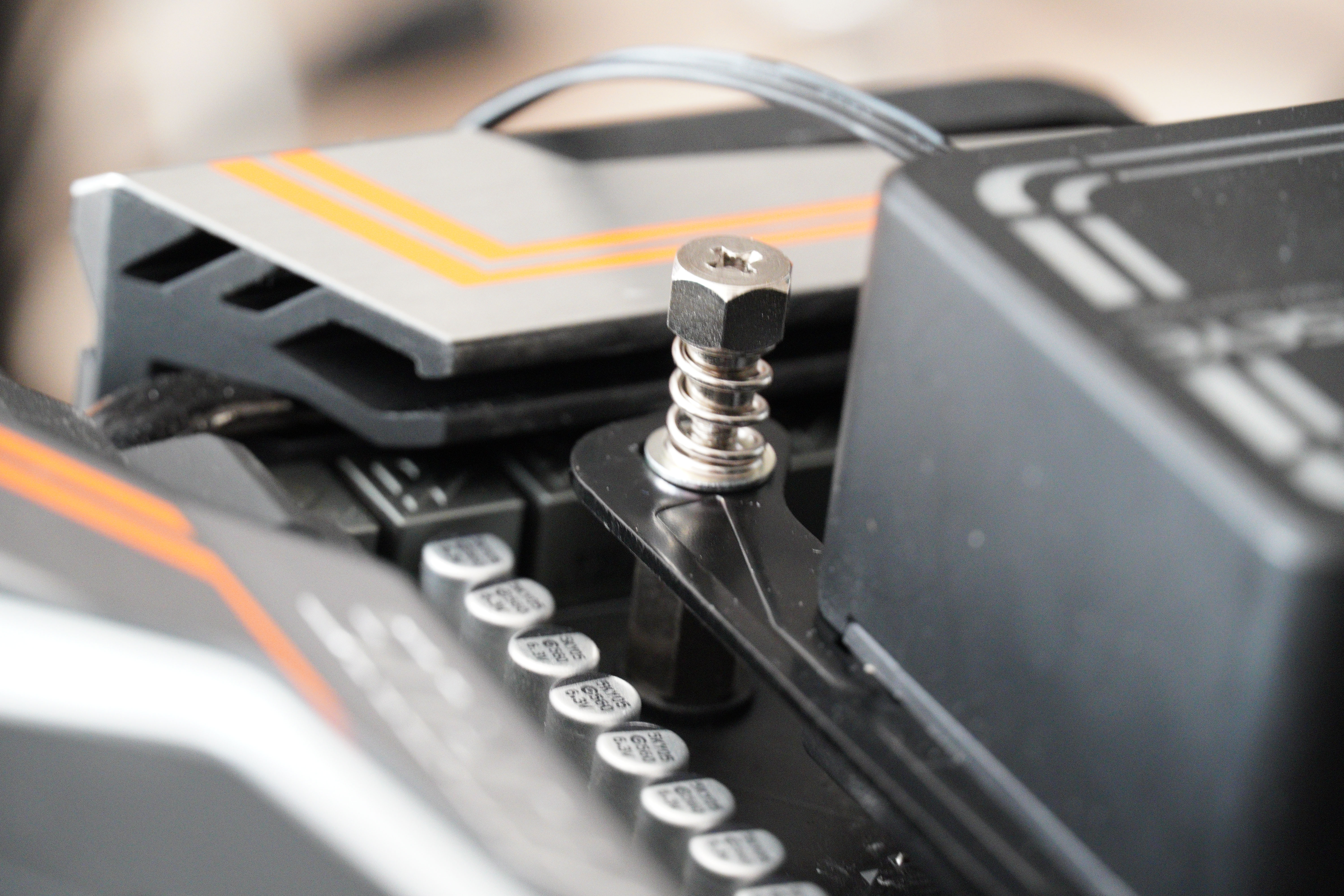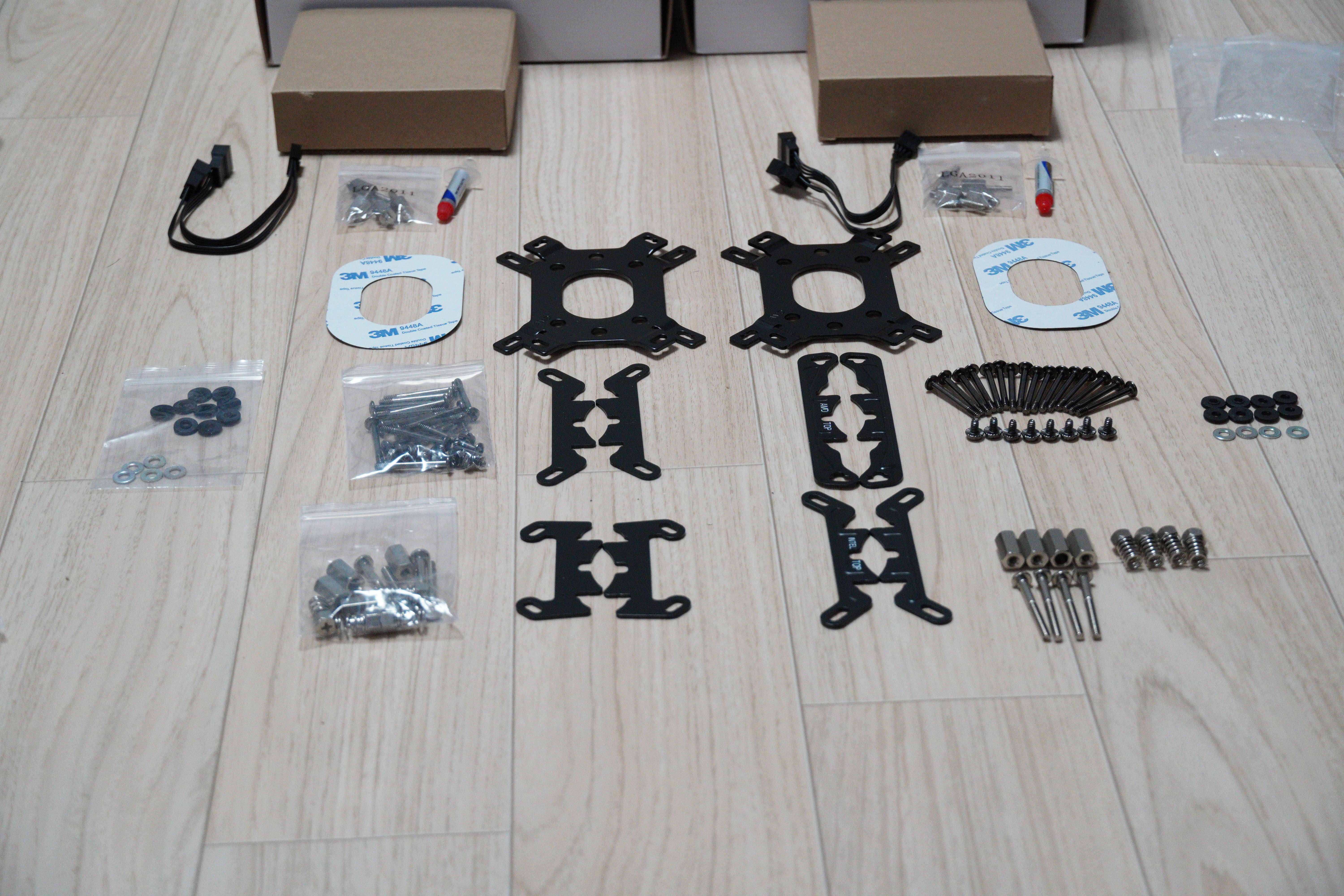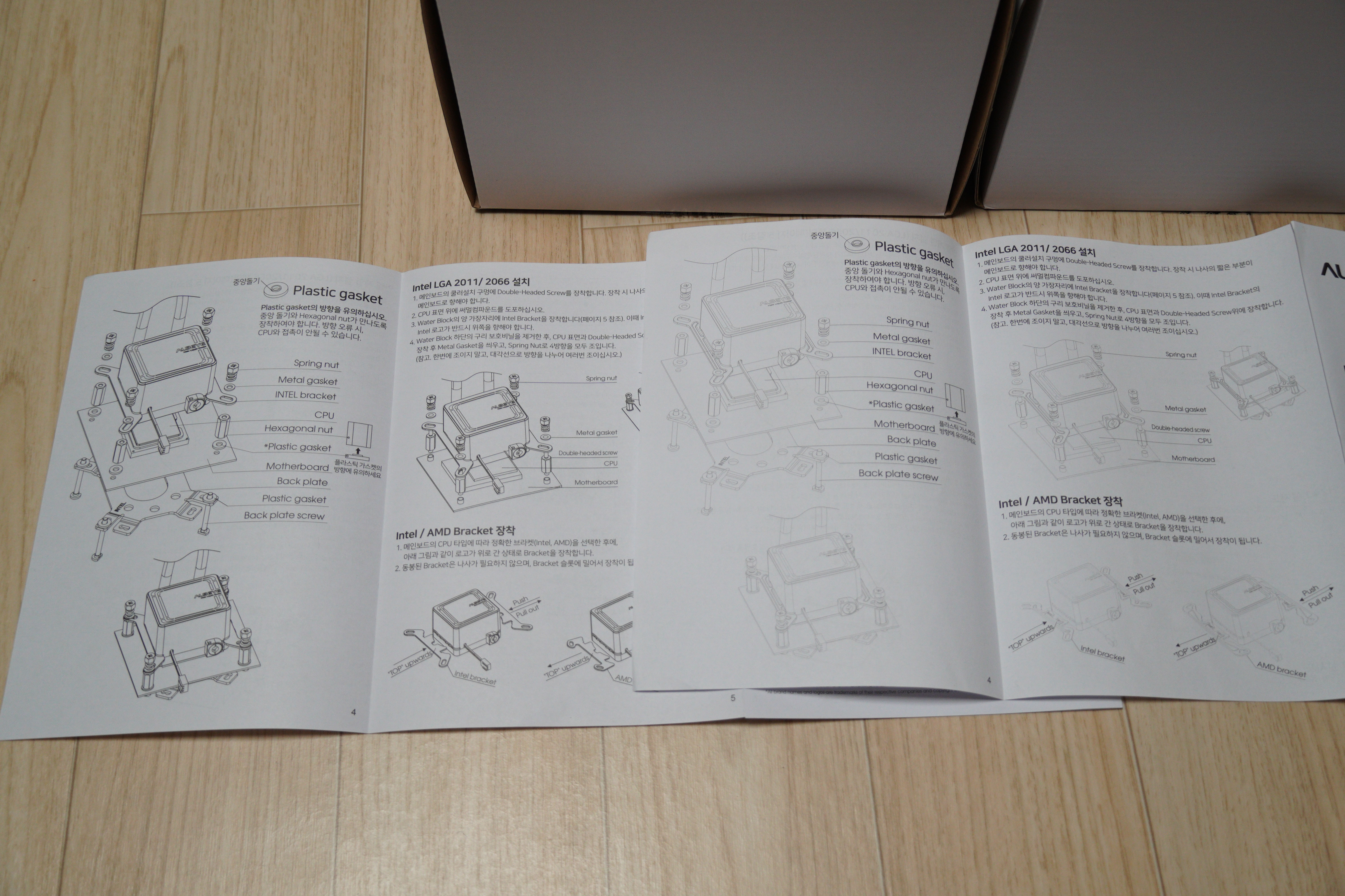 이후 동봉된 써멀을 뿌린 뒤, CPU 펌프를 올린 후, 스프링이 달린 나사를 조여주면 끝입니다!