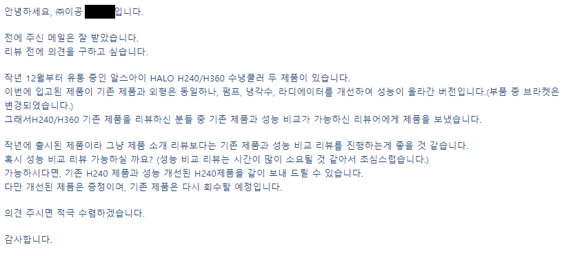 안녕하세요 ITKBJ 김병장입니다. 오늘 가져온 제품은 ALSEYE 사의 HALO H240 수랭쿨러입니다.