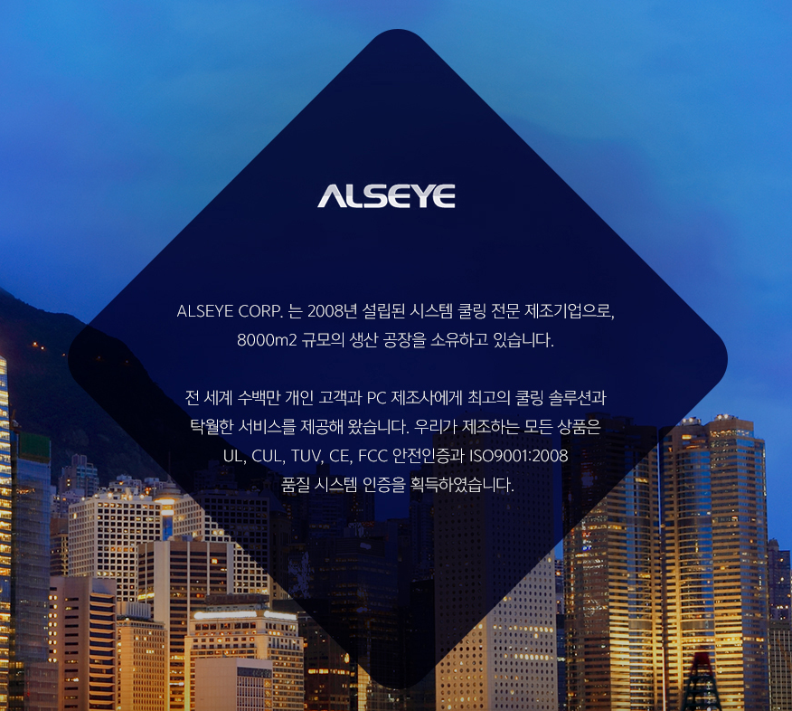 먼저, ALSEYE, 알스아이 사는 중국의 시스템 쿨링 제조 기업입니다. 우리나라에서는 (주) 이공사에서 유통을 하고 있습니다. 중국의 공장덕에 저렴한 가격에 쿨러들을 판매하고 있습니다.