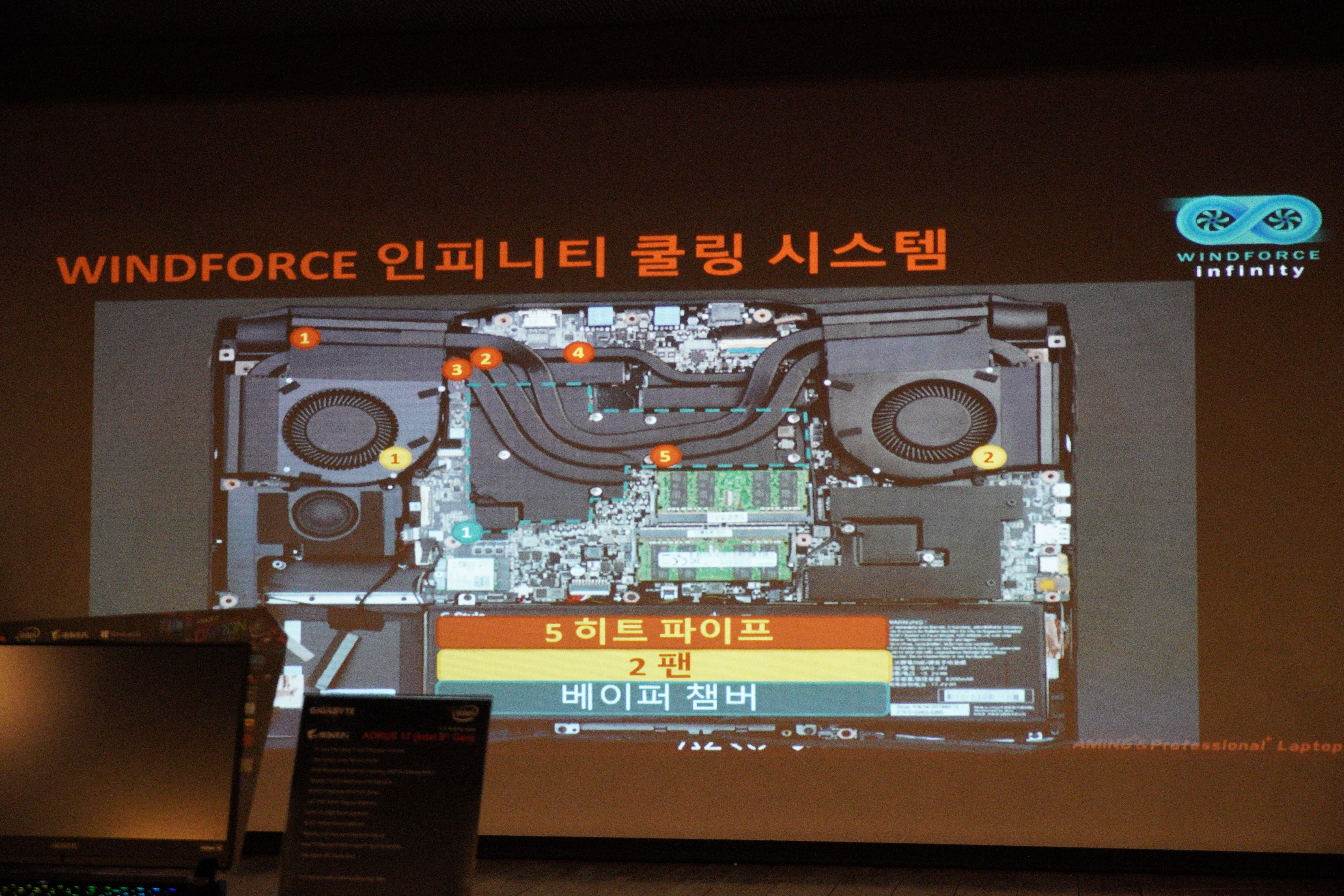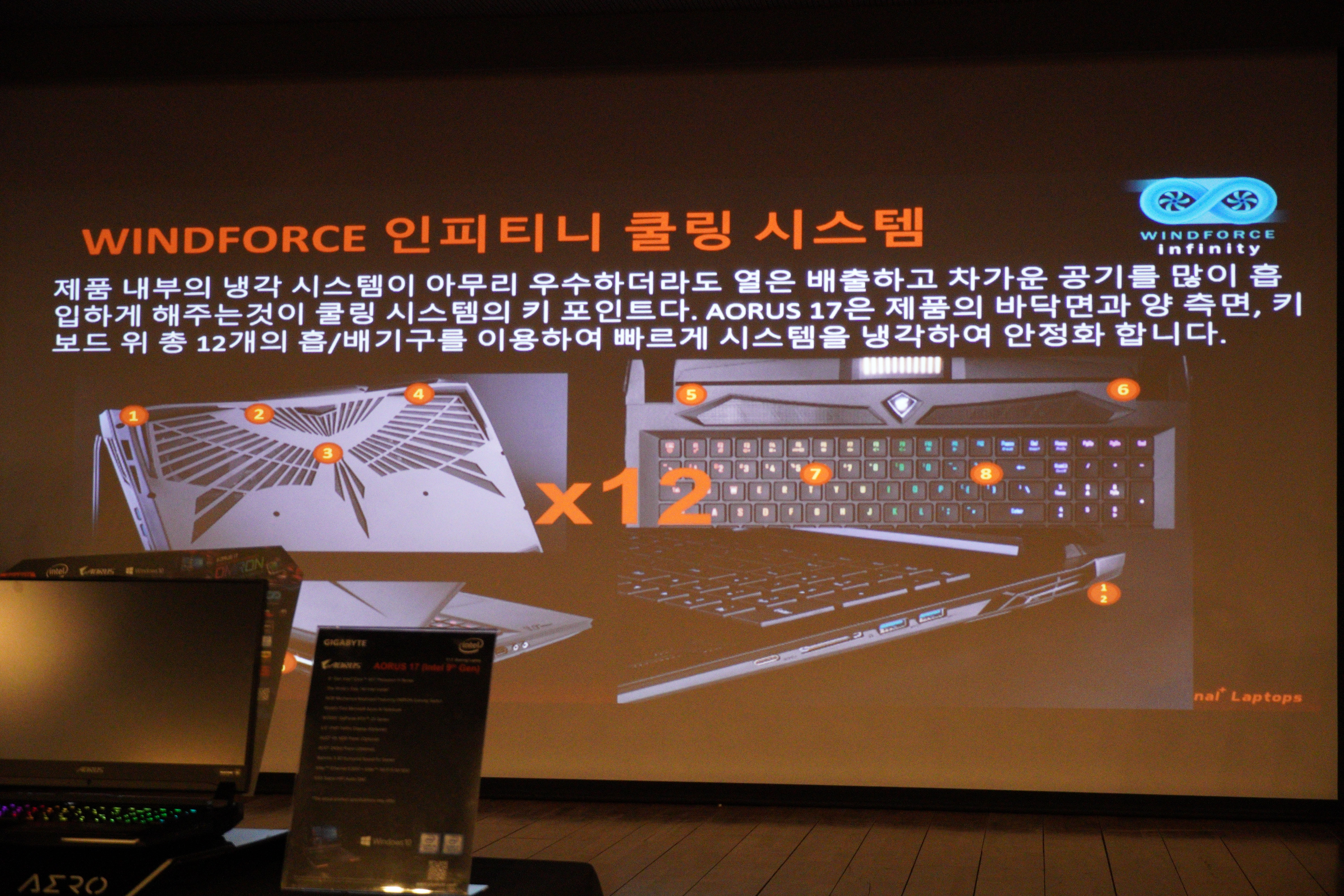 행사장에 베이스 소음이 있어 측정을 불가하였지만 상당히 낮은 쿨러 소움을 보여주었으며, 키보드부분이 그렇게 뜨거워지지 않았습니다. 저는 MSI사의 게이밍노트북을 사용하면서 게임을 하면 높은 소음과 키보드부분이 너무 뜨거워지는게 불만이였는데, 기가바이트 노트북은 약간 따뜻해지는 정도에 그치고, 소음이 적어 만족하였습니다.