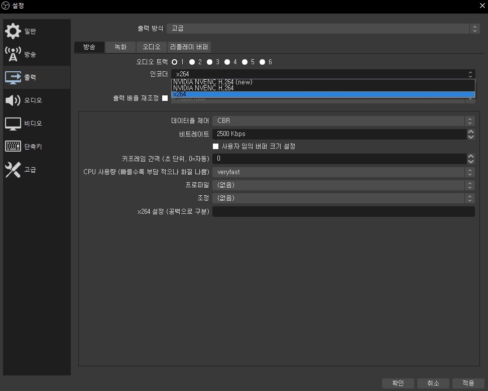 먼저 인코더는 X264를 설정합니다.