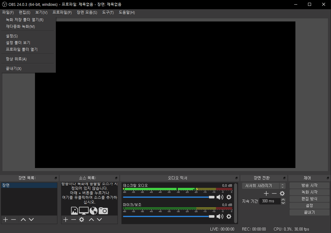 아래부터는 CPU자원과 OBS Studio를 활용한 가이드가 나갑니다. 엔비디아 그래픽카드나 라데온 그래픽카드를 활용하지 않습니다. 관련 이유는 후술하겠습니다.