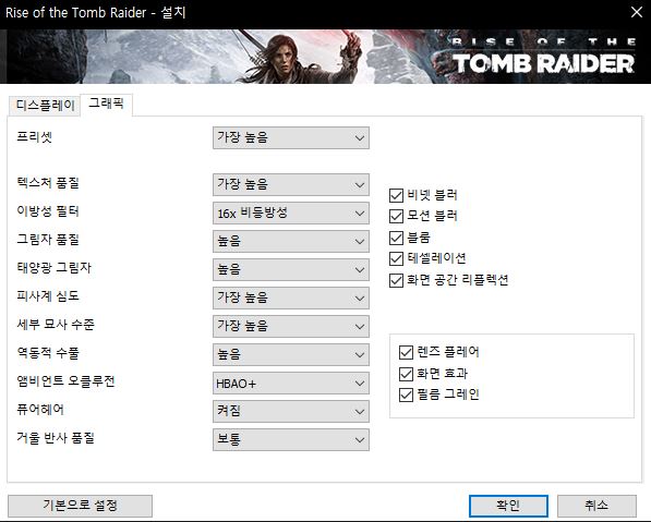 테스트는 라이즈 오브 더 툼레이더 풀옵션으로 진행하였습니다.