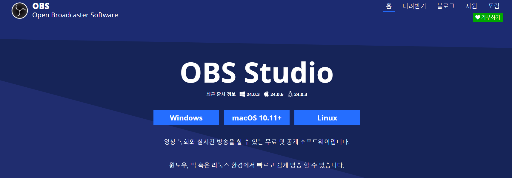 https://obsproject.com/ko <- OBS Studio 사이트입니다.