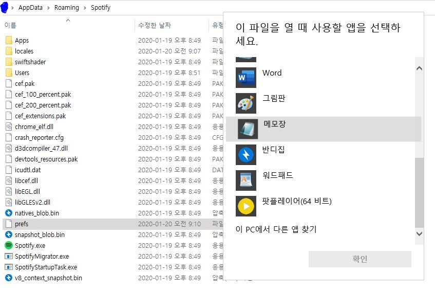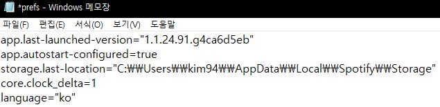 안에 prefs 파일을 더블클릭하고, 메모장으로 연다