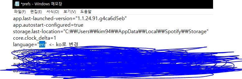 저 한글 파일을 영어와 같은 다른 언어의 파일로 교체할시, Spotify에 적용되어있는 SHA 프로텍션때문에 교체하면 원래 파일로 돌아가서 재생성됩니다.