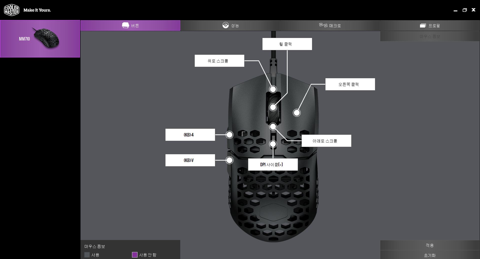 쿨러마스터측에 문의를 넣은 상태이고, 게이밍 마우스라면 길게 누르기도 지원했으면 하는 아쉬움이 있습니다. SW 패치로 가능했으면 하네요.