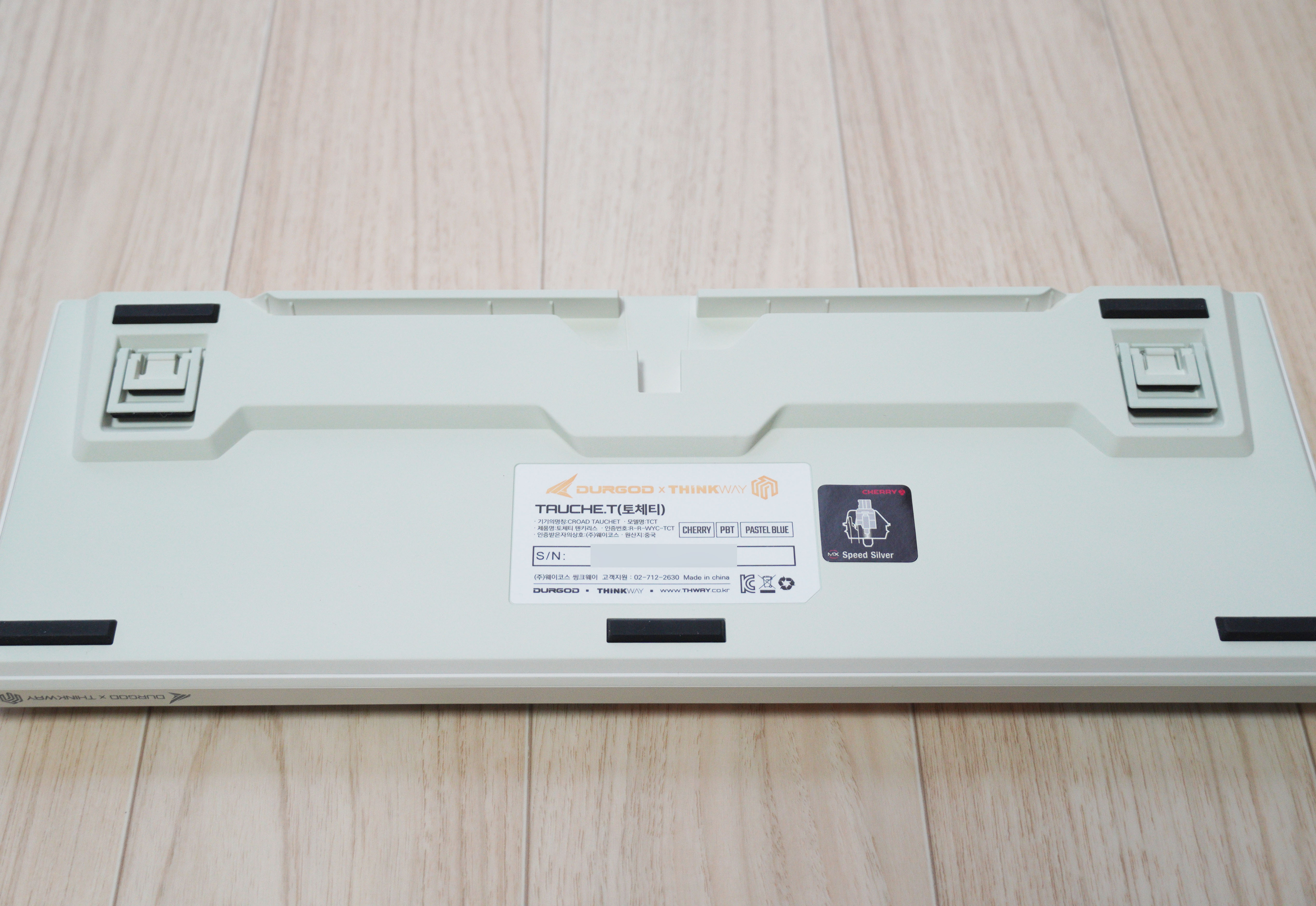 후면에는 키보드 기본 정보와 시리얼 넘버, 축 스티커가 붙어있습니다.