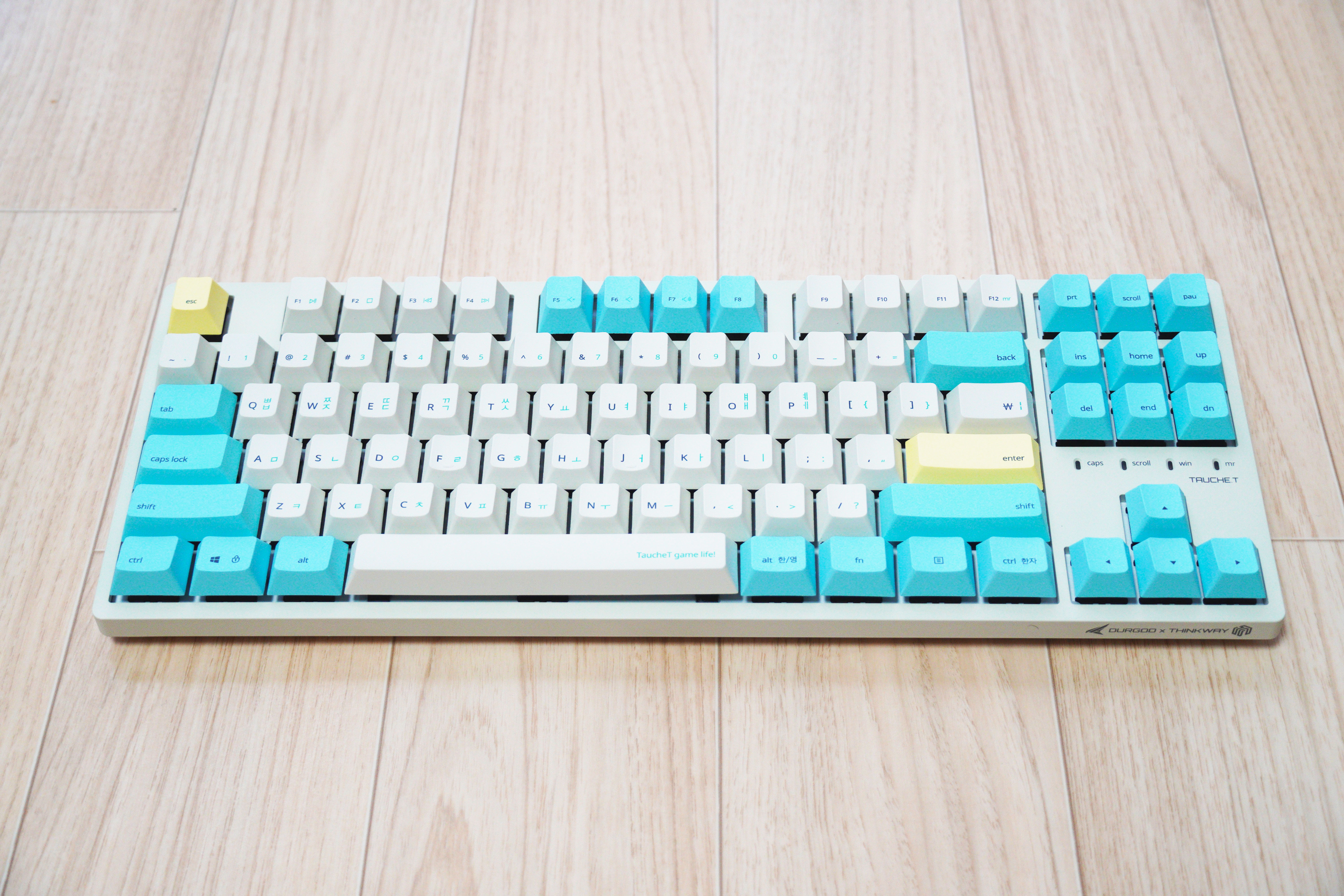 듀가드는 중국의 키보드 업체로써 기본기를 상당히 중시하고, 고품질 PBT키캡을 만들기로 유명합니다. 그런 듀가드에서 TAURUS 제품군을 기반으로 한국의 씽크웨이와 협업하여 키보드를 만들게 되었습니다.