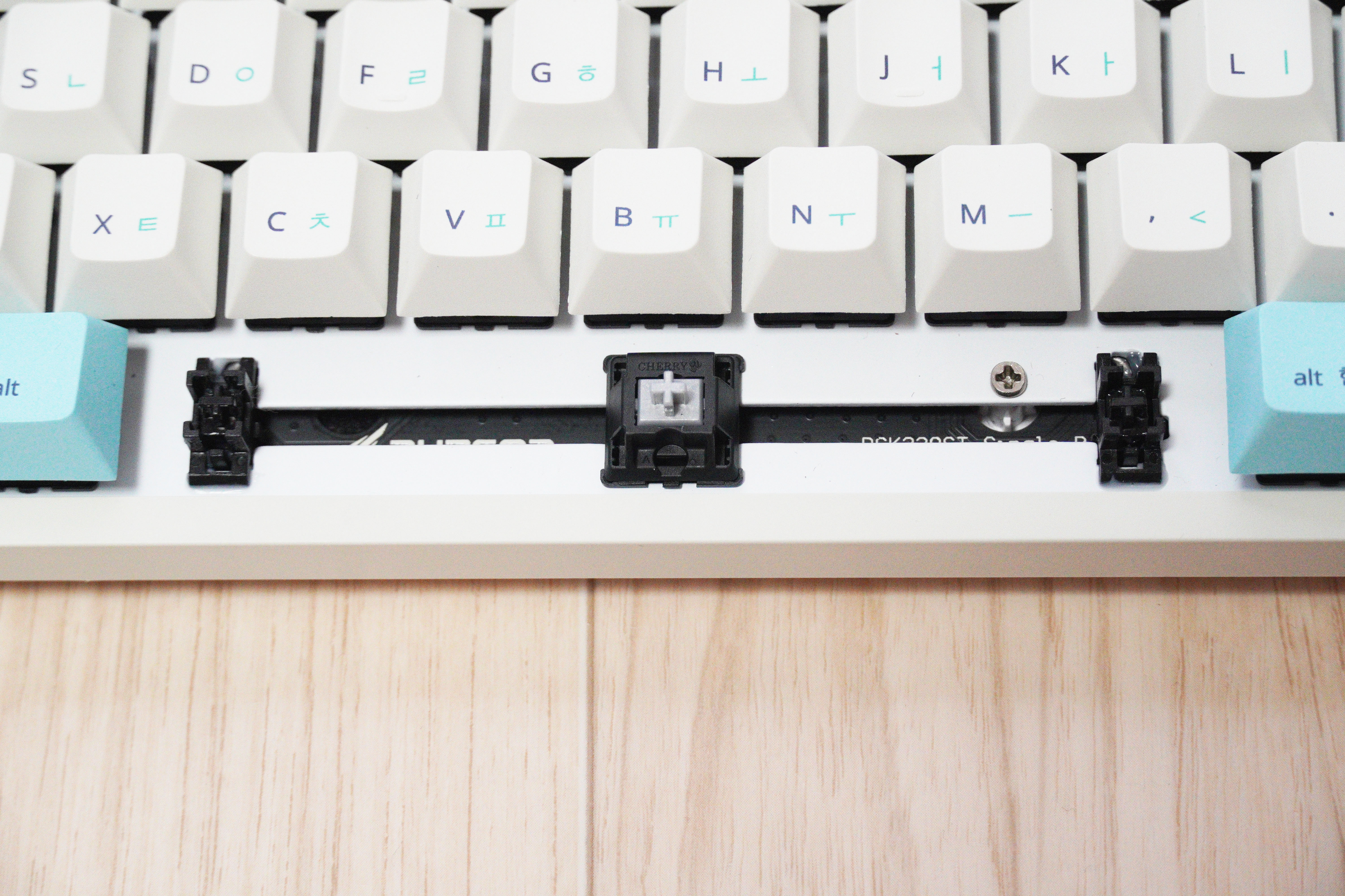 스테빌도 정숙하고, 윤활 역시 잘 되어있으며, 키감도 살아있습니다. 체리축을 정방향으로 탑재하여 키캡놀이 역시 가능하고, 기본 내장된 염료승화 PBT 키캡 역시 잉크번짐 없이 완벽한 모습을 보여줍니다.