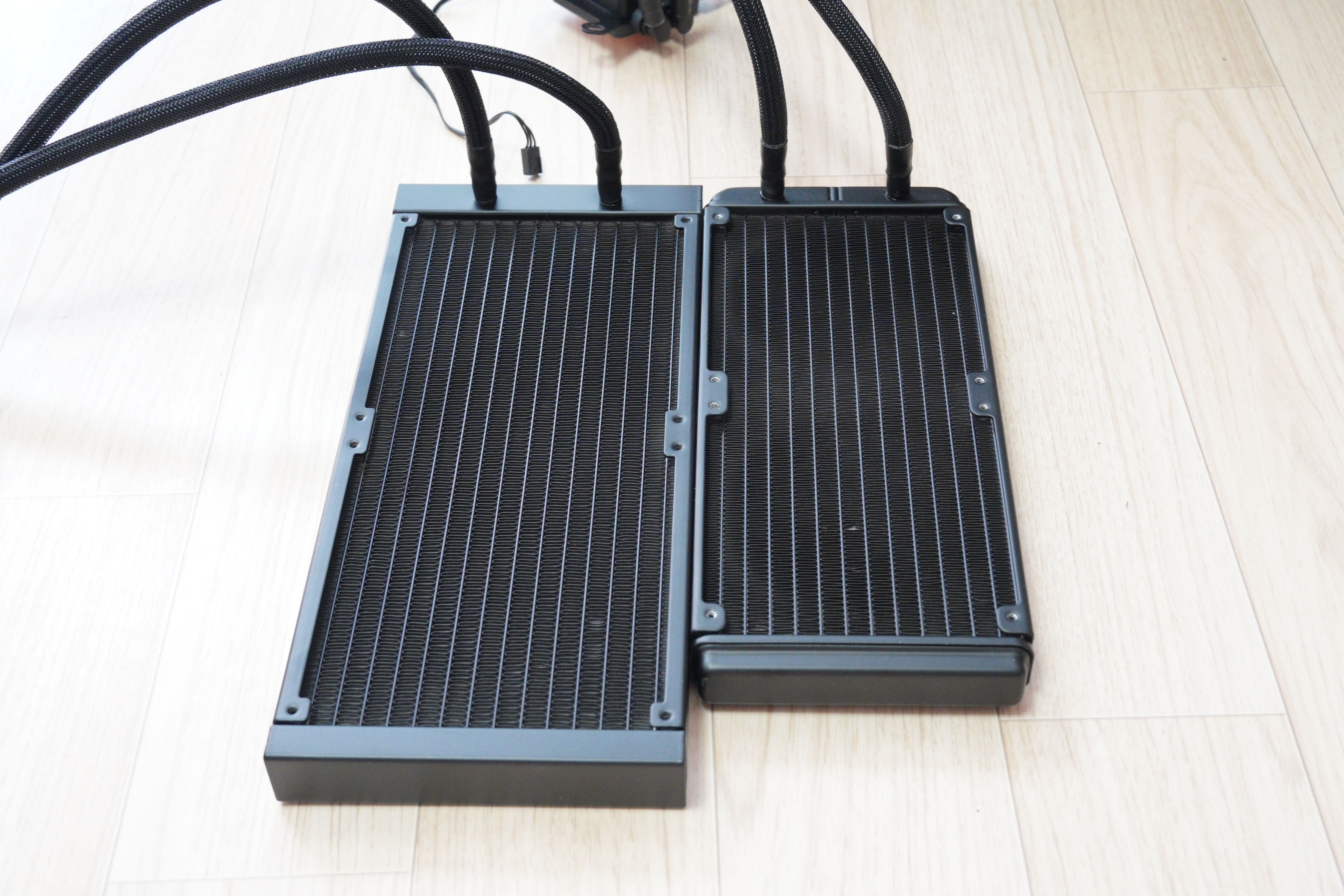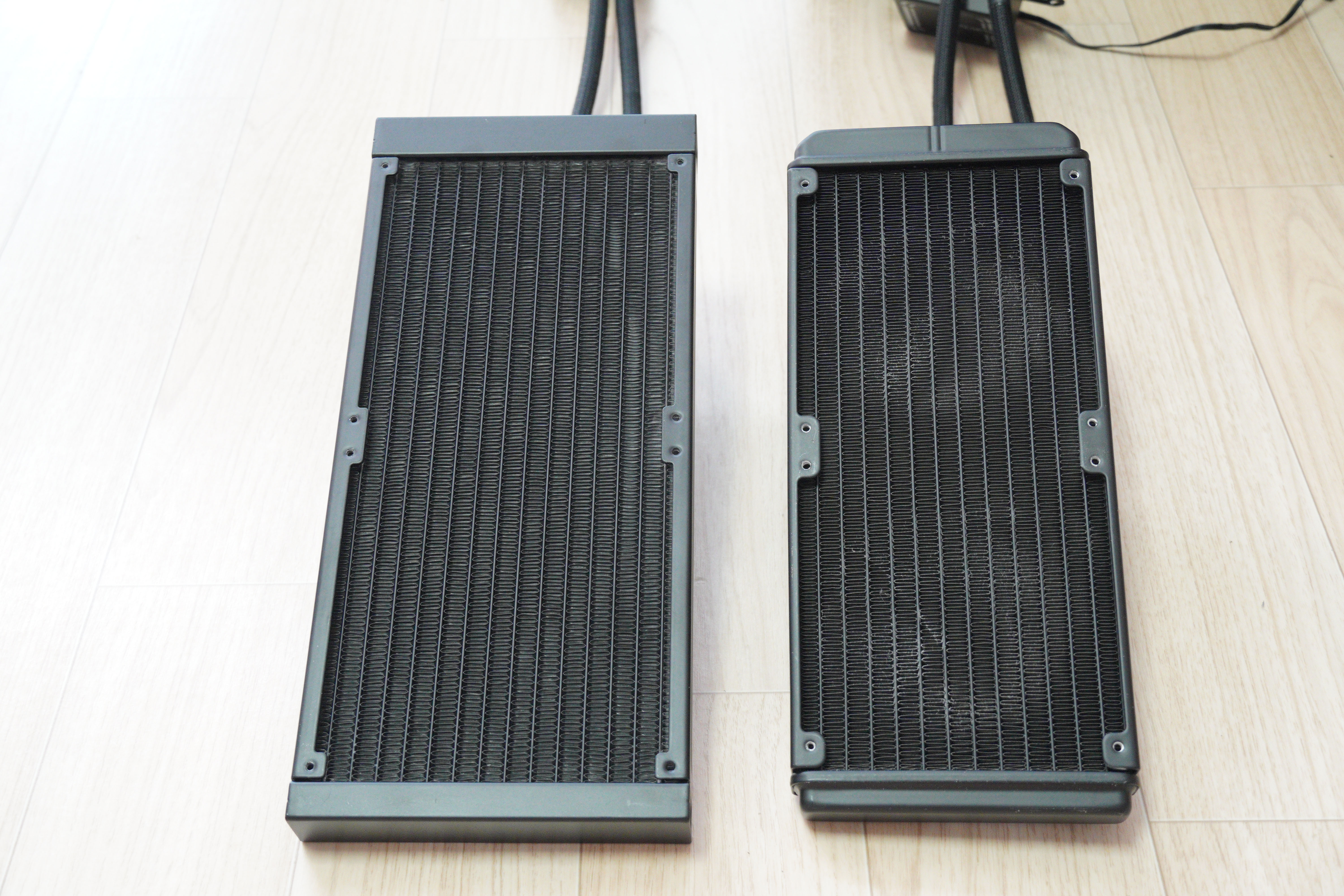 한가지 미세한 차이점을 보자면, 현재 왼쪽이 H240, 오른쪽이 H280인데, 워터블록과 호스가 연결된 부위의 패킹이 H280이 조금 더 튼튼한 인상을 주었습니다. 근데 거의 차이가 없어서 제조 공정상의 약간의 차이인것으로 보입니다.