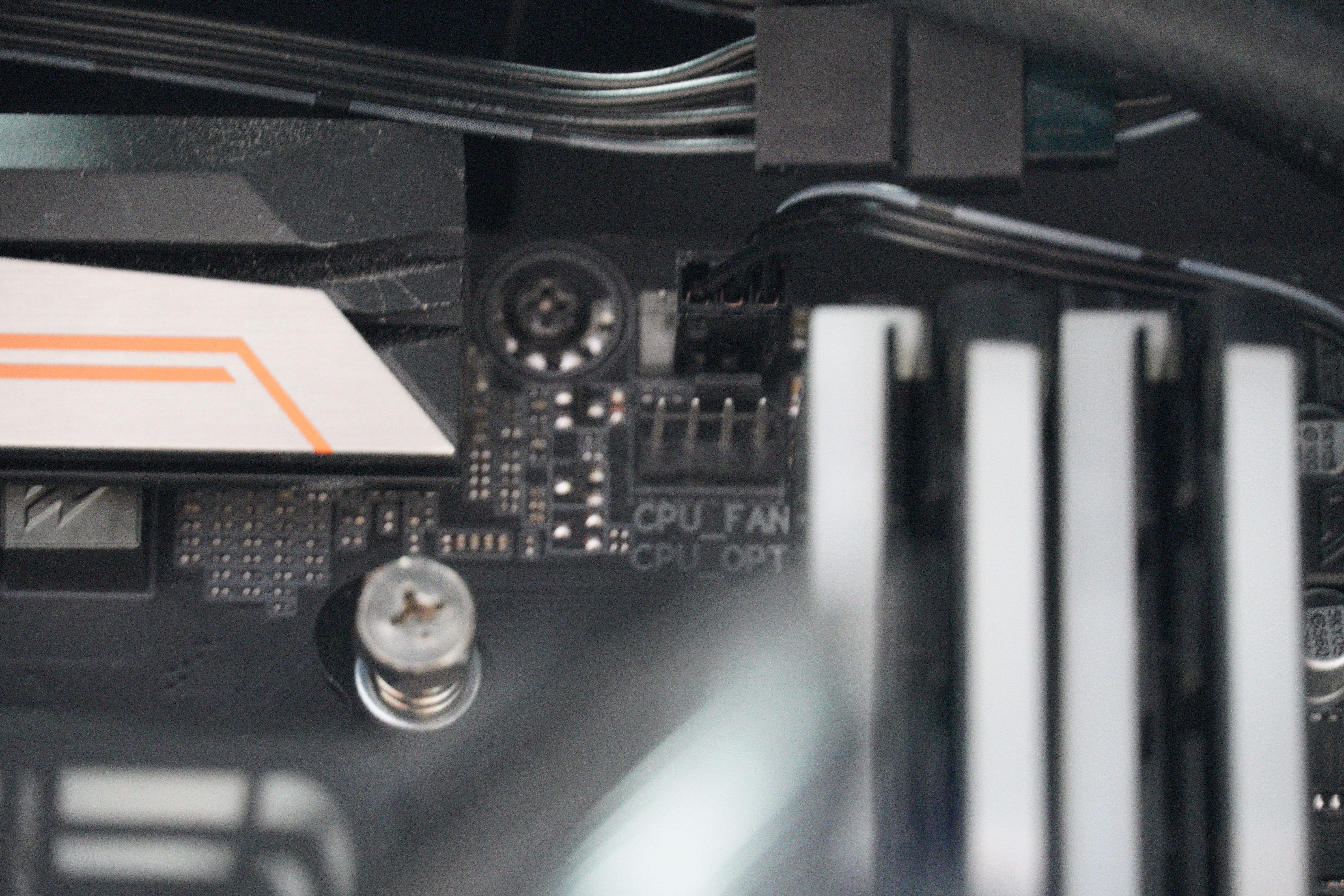 CPU FAN 부분에 펌프 전원을 연결해주면 장착은 끝납니다.
