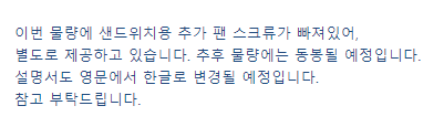참고로, 현재 생산된 물품들이 설명서가 영문이 동봉되어있고, 팬스크류가 기본 동봉품에는 16개라 적혀있으나 8개만 동봉되어 8개의 스크류를 추가로 택배박스에 동봉해준다고 합니다. 제품 구매하실때 참고하시면 될 것 같습니다.