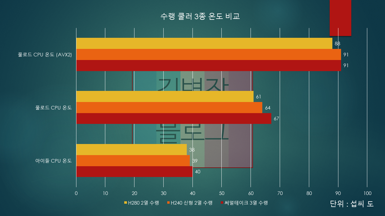 H240과 적게는 1도에서 많게는 3~4도가량 차이가 났습니다. 우리 써멀테이크 수랭은 많이 늙어서... 제성능이 안나오네요.