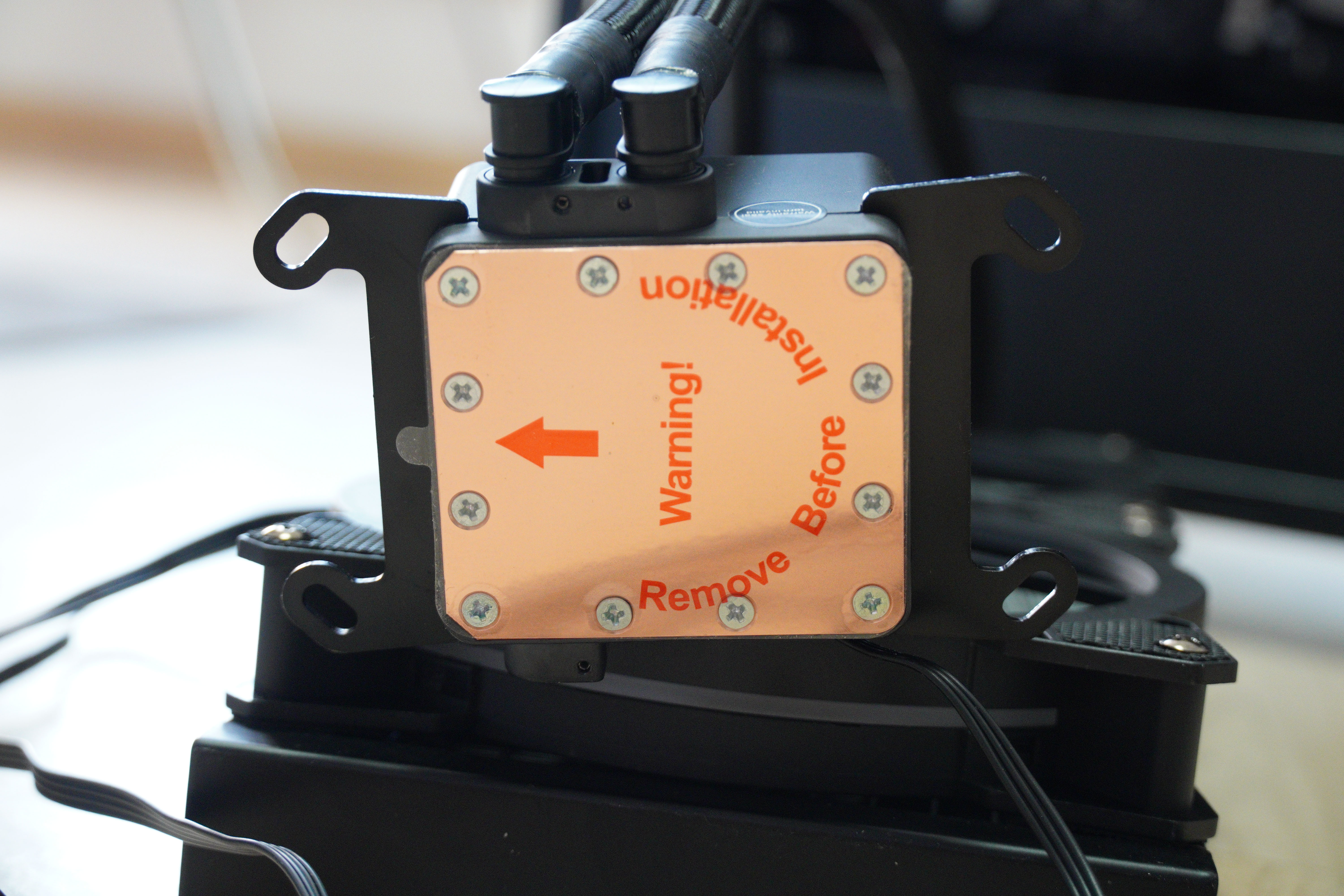 꼭!! 장착 전에 워터블록의 비닐을 제거해야됩니다!! 인터넷에 간혹가다보면 온도가 잡히지 않아 보니 비닐 제거를 안한 사례가 많기에, 수랭이든 공랭이든 CPU와 맞물리는 부분의 이물질을 제거해주셔야됩니다.