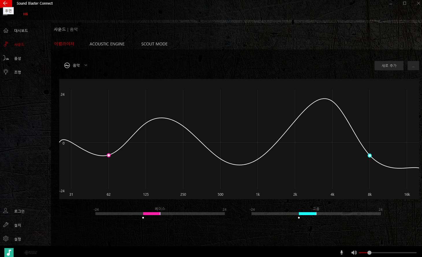 메인화면에는 여러 프리셋이 존재하는데, 사운드블라스터에서 직접 전문가들이 EQ를 튜닝하고 수치를 조절하여 만든 프리셋들이라고 합니다.