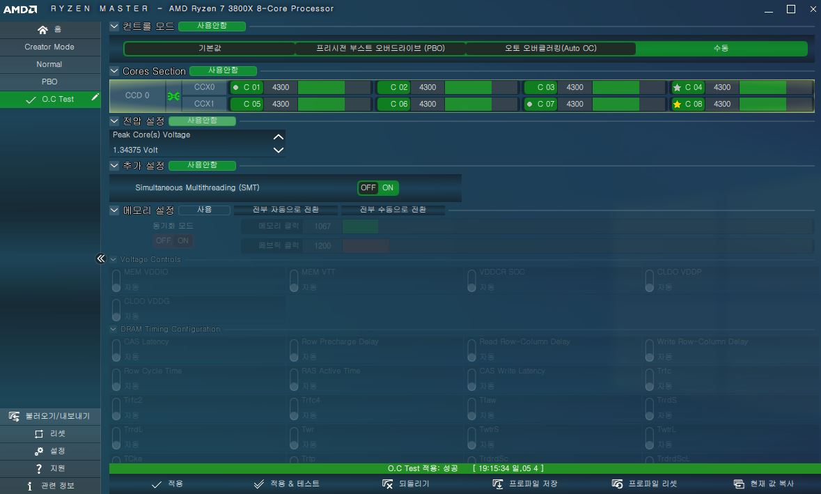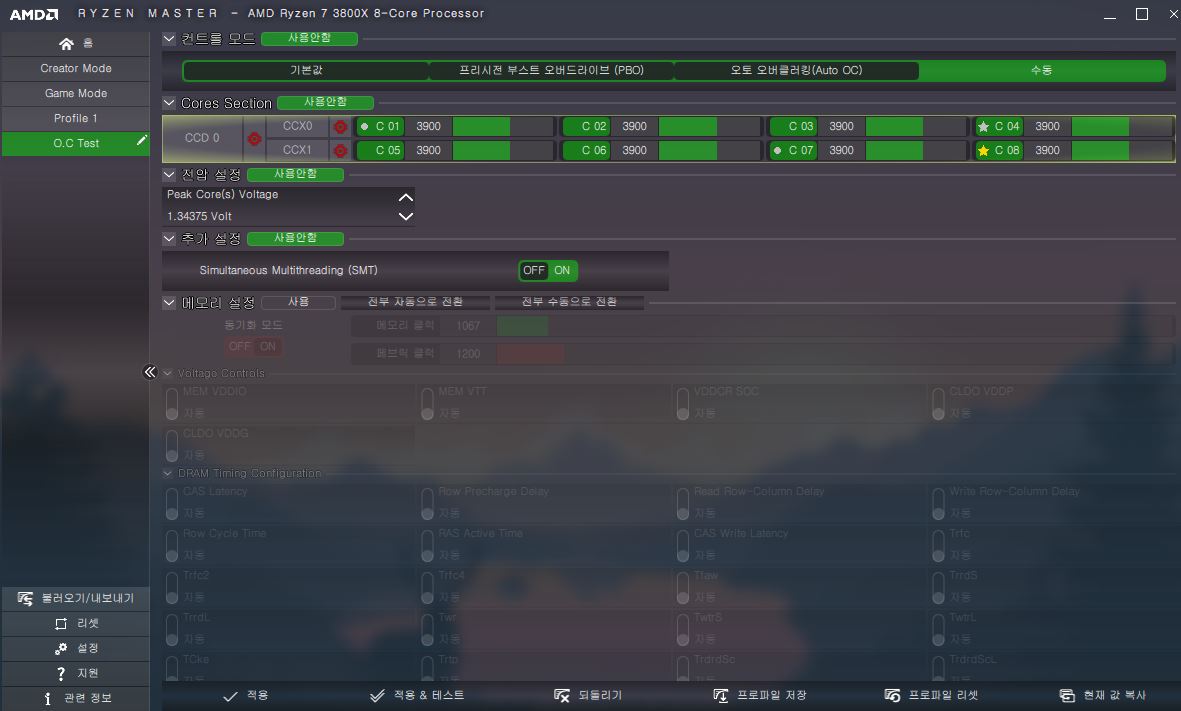 셋업에는 모두 라이젠마스터를 활용하였습니다.