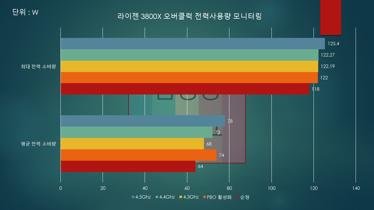 결과물은 별 차이 없는데 왜 전력을 더 먹는건지;;; 보드 바이오스를 건들여보면서 원인을 찾아봐야 될 것 같습니다.