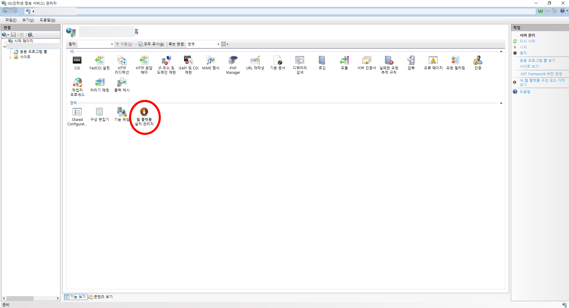 IIS관리자에서 웹 플랫폼 설치 관리자에 들어갑니다
