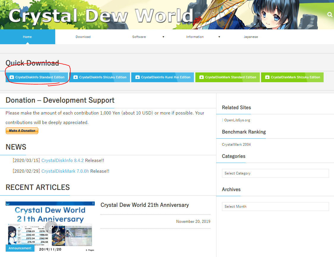 사이트에서 Quick Download 탭의 CrystalDiskInfo Standard Edition을 받으시면 됩니다.
