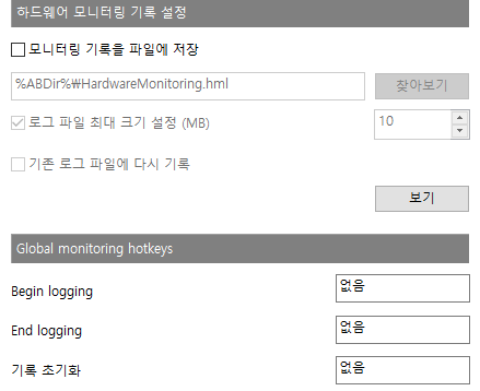 모니터링 기록을 파일에 저장 탭을 활성화 하시면 사용할 수 있습니다.