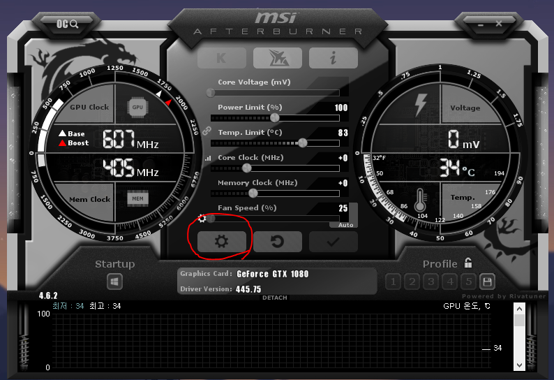 아까전의 AfterBurner 설정창에 들어가봅시다.