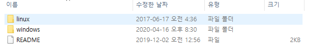 압축을 풀면 다음과 같은 폴더들이 나옵니다.