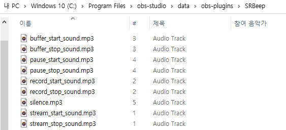 OBS 설치 경로로 오시면, obs-studio -> data -> obs-plugins -> SRBeep 폴더가 있습니다.