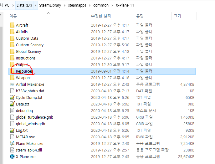 먼저 X-Plane 11이 설치된 폴더로 가줍니다.