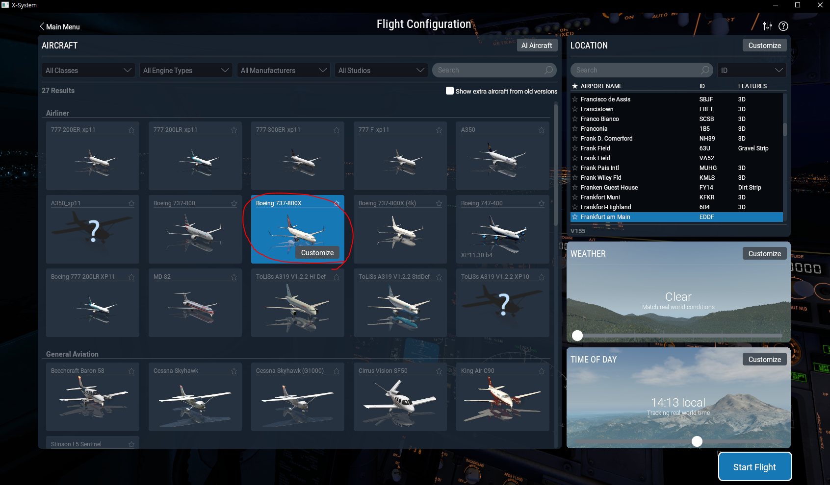 이제 항공기를 고르고 Start Flight를 해보겠습니다.