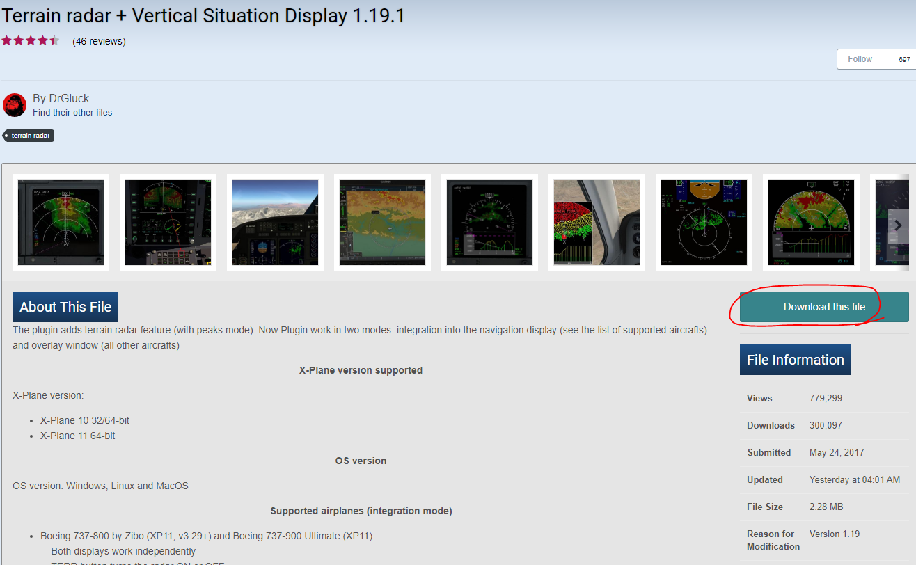 The plugin adds terrain radar feature (with peaks mode). Now Plugin work in two modes: integration into the navigation display (see the list of supported aircrafts) and overlay window (all other aircrafts) X-Plane version supported X-Plane version: X-Plane