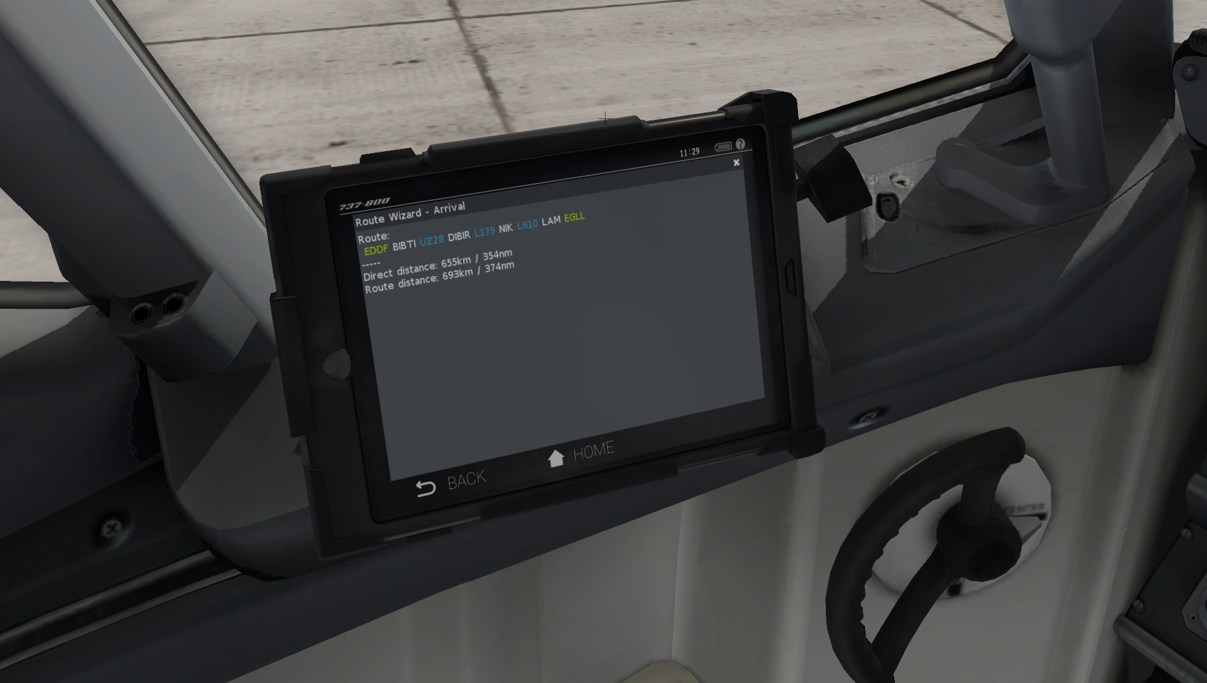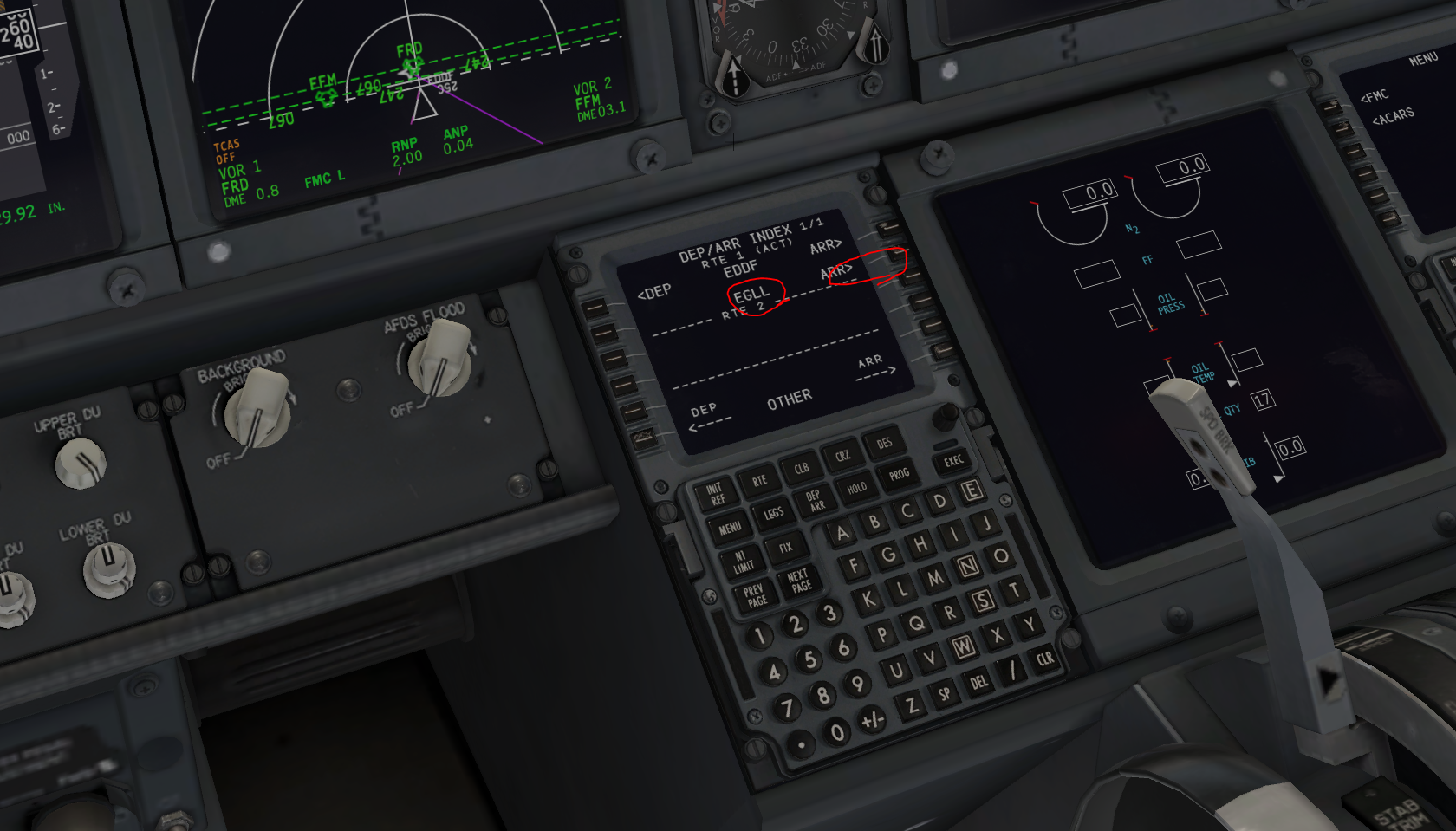 이제 항로를 지정합니다. 두가지 선택지가 있습니다. 먼저 항공기의 Flightbag을 이용하는 방법입니다.