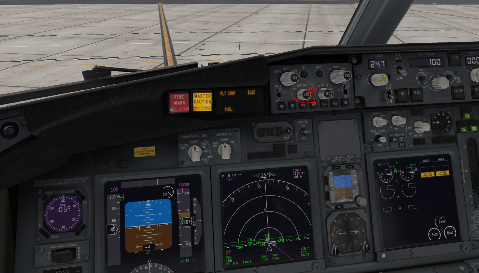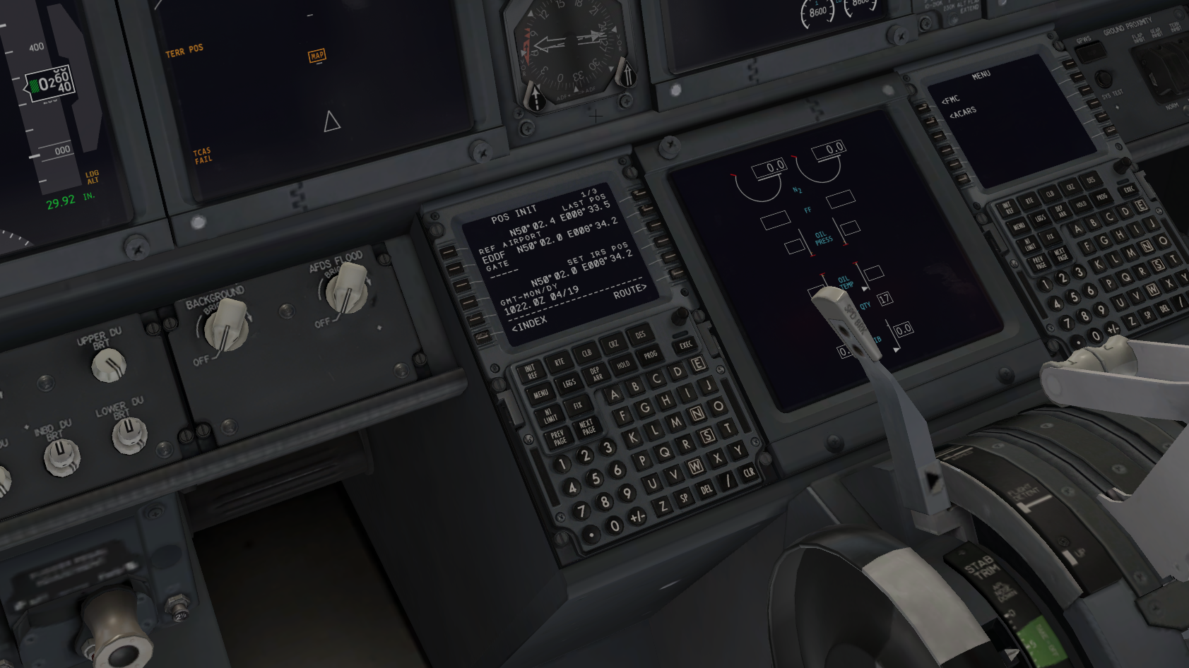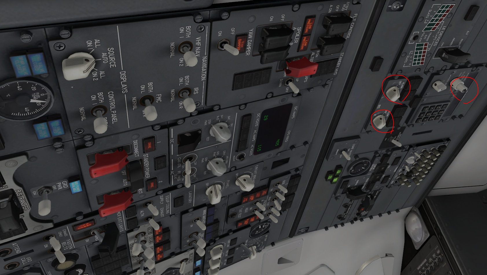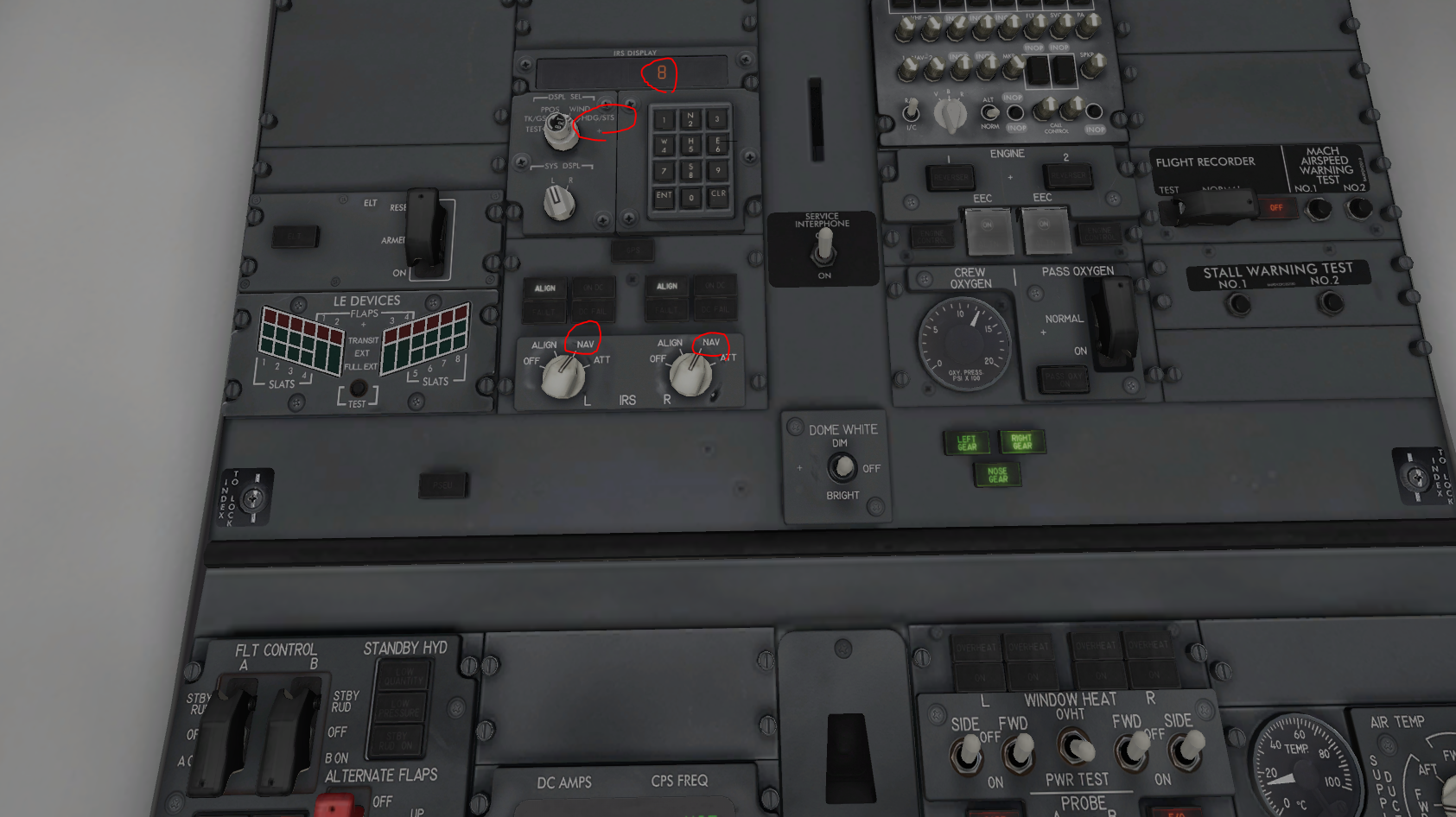 처음 돌린 LR 두개의 버튼은 NAV로 하여, IRS ALIGN되도록 돌리고, 제일 위에 있던 버튼은, IRS 정렬에 남은 시간을 표시해줍니다.