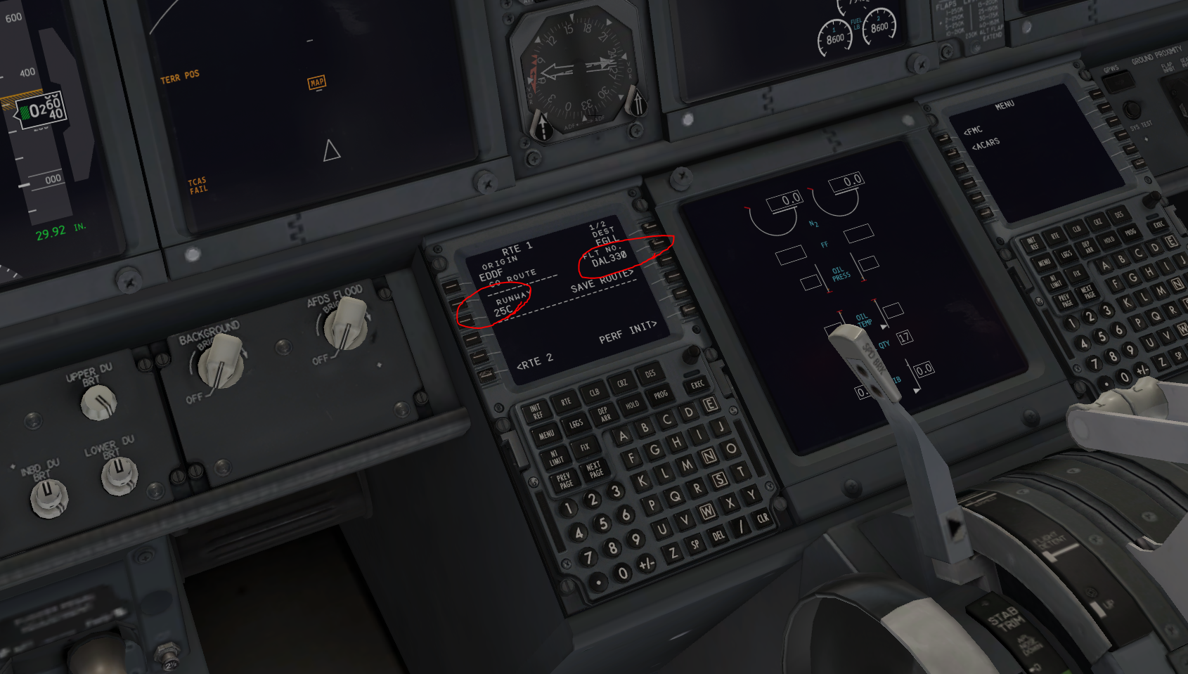 그다음, RUNWAY에 사용할 활주로 번호와, FLT NO.에 사용할 편명을 적습니다.