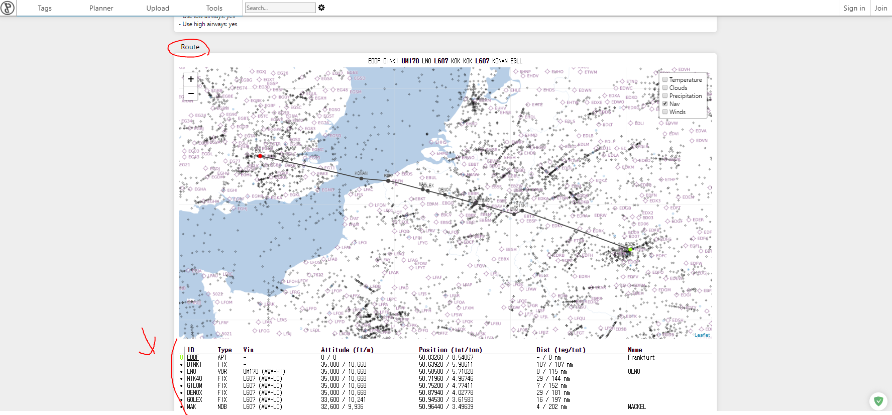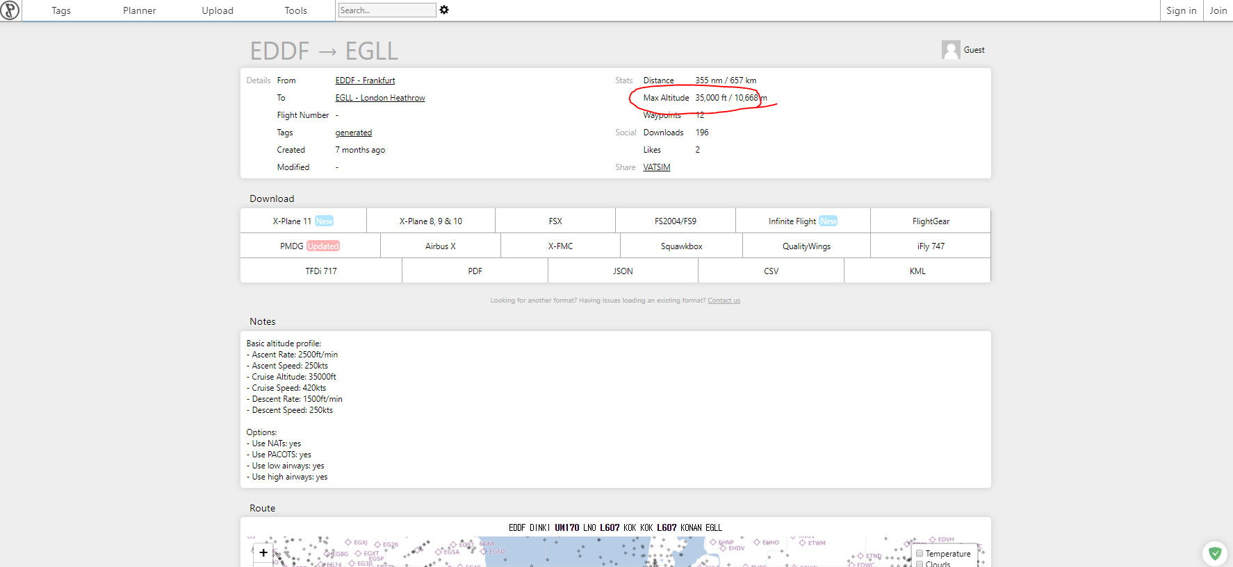 제일 위에 Max Altitude를 통해 FL350이 최고 높이임을 알고 적절하게 최고 고도를 지정할 수 있습니다.