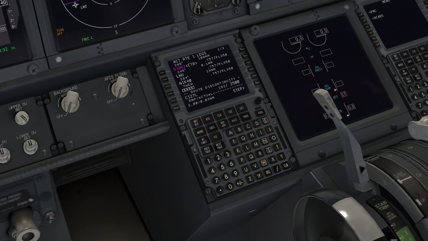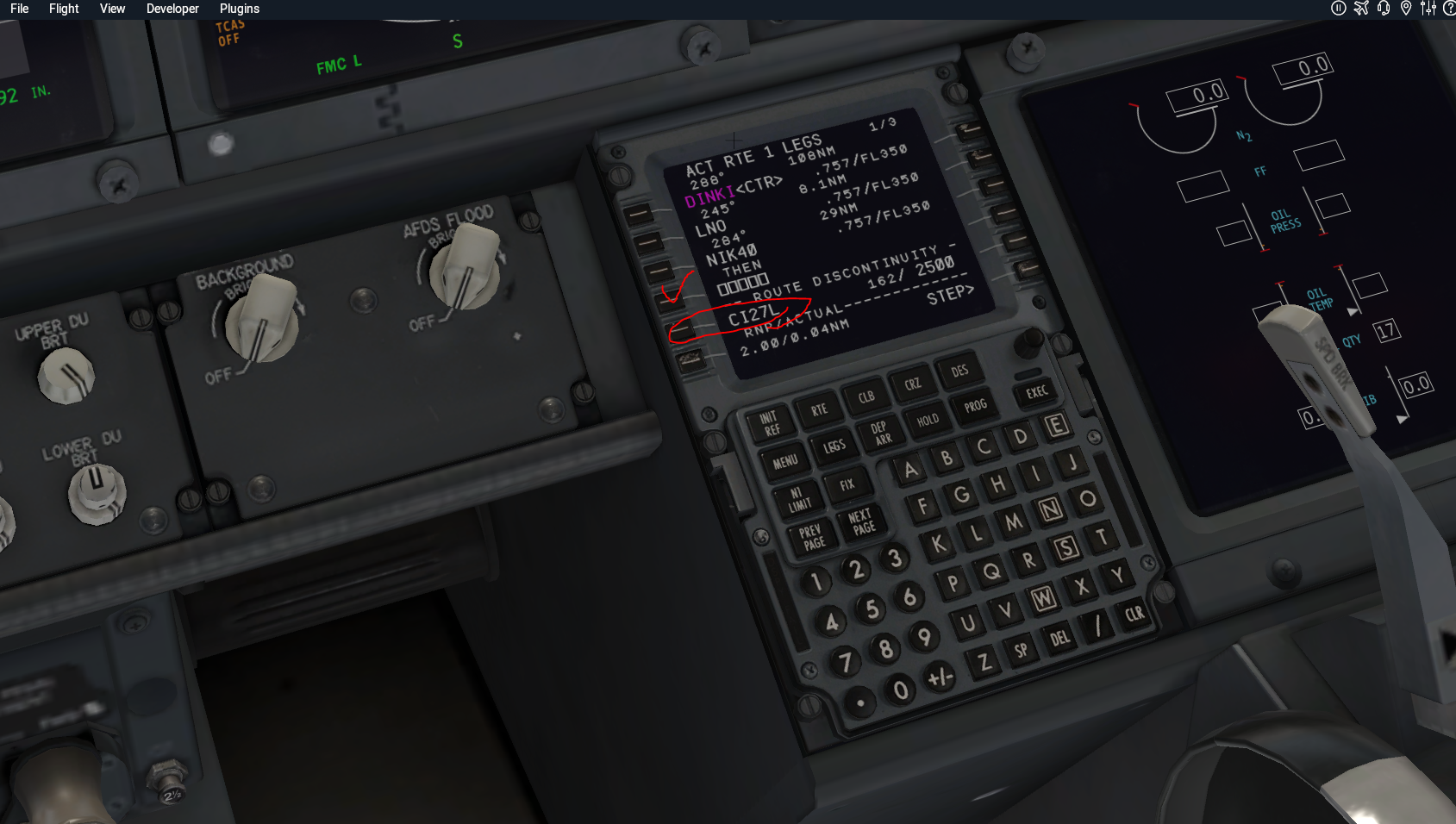 그러면 FMC에 오른쪽 아래에 STEP 버튼이 생깁니다. 누르면 항로를 따라가면서 제대로 입력되었는지 확인 가능합니다.